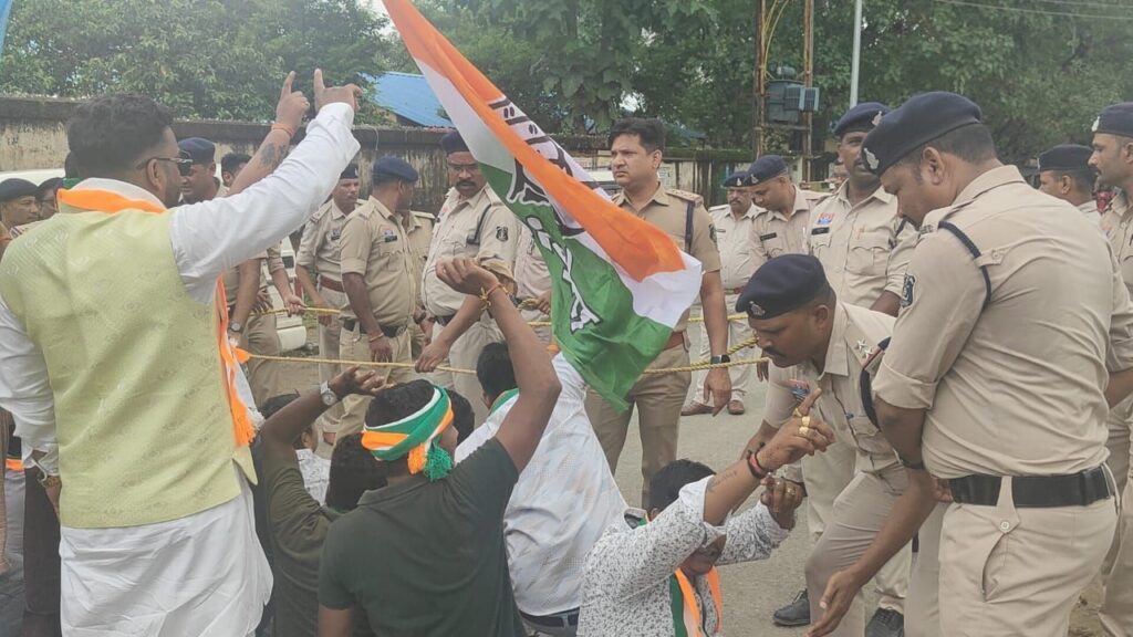 खरसिया । रायगढ़ जिलान्तर्गत विकास खंड खरसिया क्षेत्र में खाद की भारी कमी के कारण किसान परेशान हैं। इस गंभीर मुद्दे को उठाने के लिए खरसिया कांग्रेस, महिला कांग्रेस, यूथ कांग्रेस, एनएसयूआई और ग्रामीण-शहरी कांग्रेस के नेताओं ने शुक्रवार को मुख्यमंत्री विष्णुदेव साय से शांतिपूर्वक मुलाकात कर समाधान की मांग करने की योजना बनाई थी। लेकिन जब कांग्रेस के कुछ नेता ज्ञापन लेकर मुख्यमंत्री से मिलने पहुंचे, तो वहां पुलिस प्रशासन ने उन्हें मुख्यमंत्री से मिलने से रोक दिया । इसके बाद गुस्साए कांग्रेस नेताओं ने विरोध-प्रदर्शन शुरू कर दिया। प्रदर्शन के दौरान स्थिति तनावपूर्ण हो गई और पुलिस ने कई कांग्रेस नेताओं को हिरासत में लेकर मदनपुर थाने भेज दिया। कांग्रेस नेताओं का कहना है कि वे शांतिपूर्ण तरीके से किसानों की समस्याओं के समाधान के लिए मुख्यमंत्री से निवेदन करना चाहते थे, लेकिन प्रशासन और पुलिस ने उनकी आवाज को दबाने की कोशिश की। कांग्रेस नेताओं ने बताया कि खाद की कमी के कारण क्षेत्र के किसान खेती के लिए आवश्यक संसाधनों से वंचित हैं, जिससे उनकी आजीविका पर गंभीर असर पड़ रहा है।